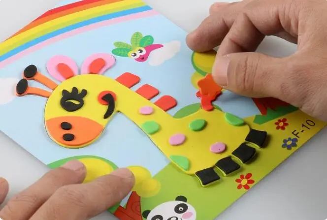 Chaque carte représente un animal ou un décor mignon, et l’enfant doit coller les pièces en mousse pour compléter le tableau. Une activité amusante, éducative et parfaite pour développer sa motricité fine, sa créativité et sa concentration.